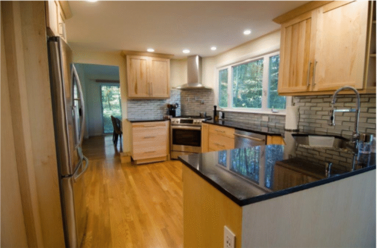 A Warm Rustic Yet Modern Kitchen Space With Many Statement Pieces The Rustic Modern Kitchen Rustic meets modern in the design elements of the space. A sturdy birch is used for the cabinetry. A sandy granite countertop compliments the cabinets,…