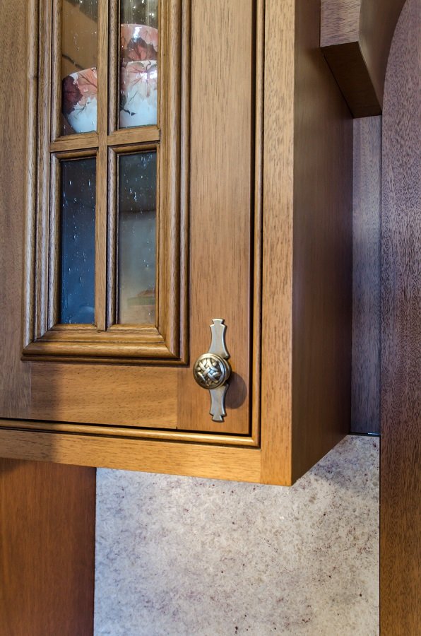 The quality of a finish for kitchen cabinets is important.  Most people have seen cabinets in which the crown moulding and the area around the handles have lost their finish. Therefore they look prematurely aged and worn. I have kitchen cabinets in my house that are more than 27 years old. They still look brand new with very little signs of wear.  A good quality cabinet requires a finish that can last. We test our finish with a quick fire test, has the ability to even handle acetone (fingernail polish remover) for a minute. They also can withstand steam and humidity. This can only be attained if it is a catalytic conversion varnish finish that has been baked on for several hours in a clean room, not just air dried. Be wary of cabinets that are “custom” and made in someone’s garage, or built and finished on site, as they will just not last.  The right finish on your cabinets can be the difference between buying your kitchen once or twice.