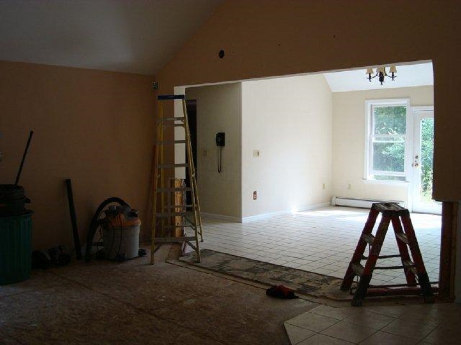- By opening up the kitchen space the kitchen is able to be much larger with very high ceilings.