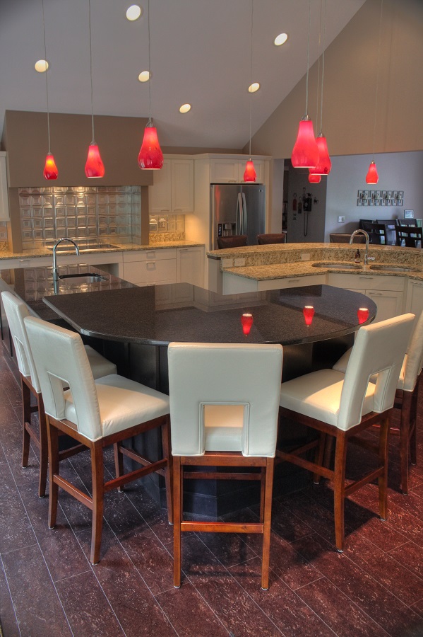 - A large island was added with seating and a prep sink, the perfect space for an extra chef to have their own work space.