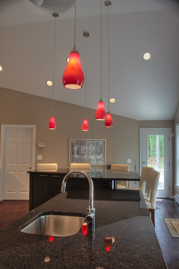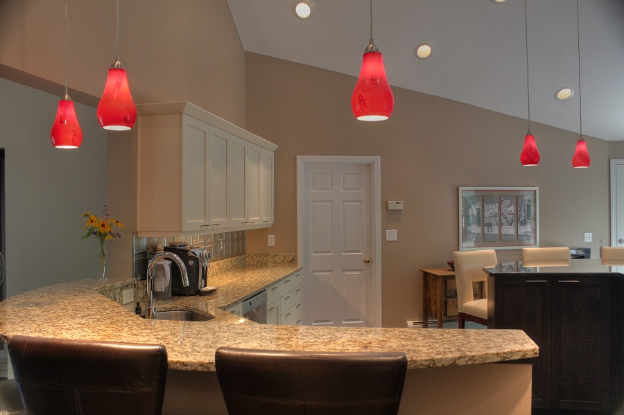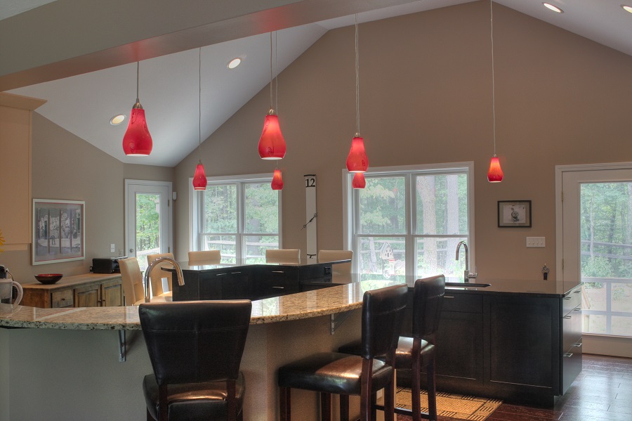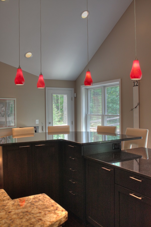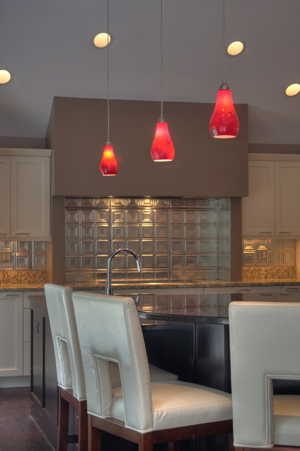 - Additional recess lights along with hanging pendants really brighten up this space.
