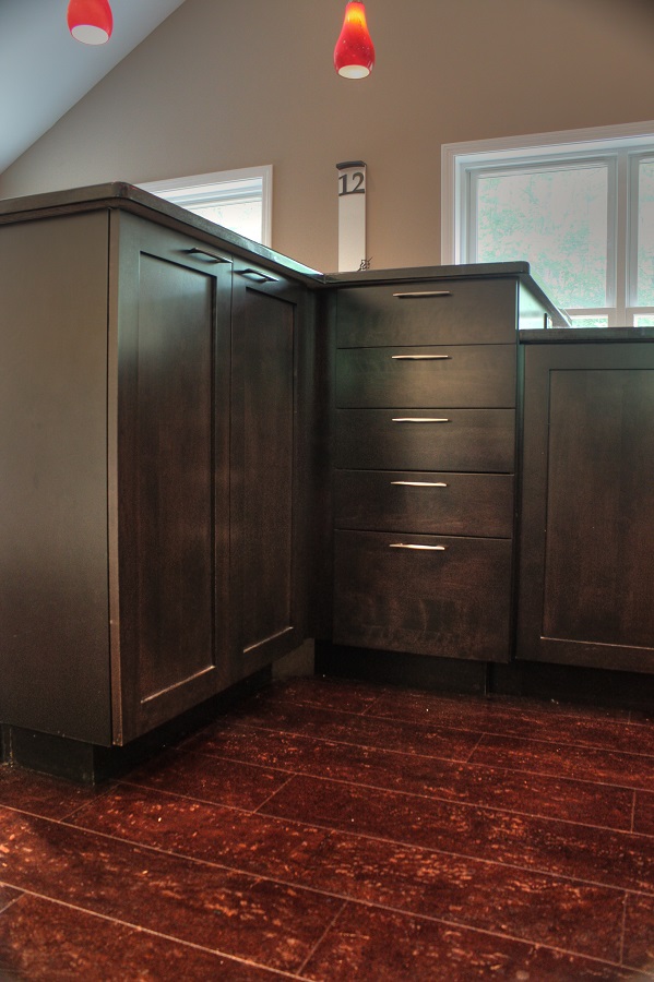 - Updating the cabinetry to a white and dark brown color create a stunning two toned affect.
