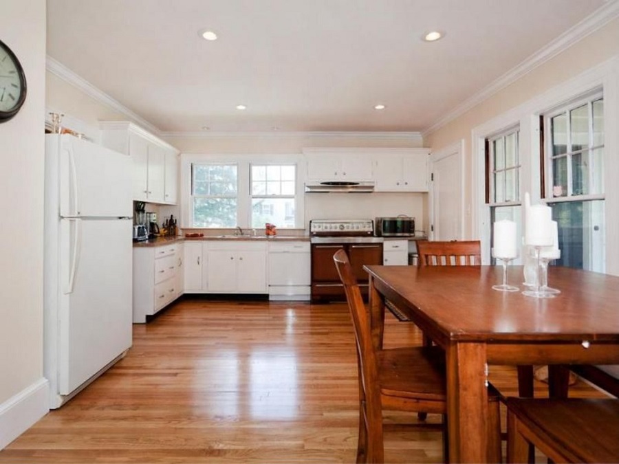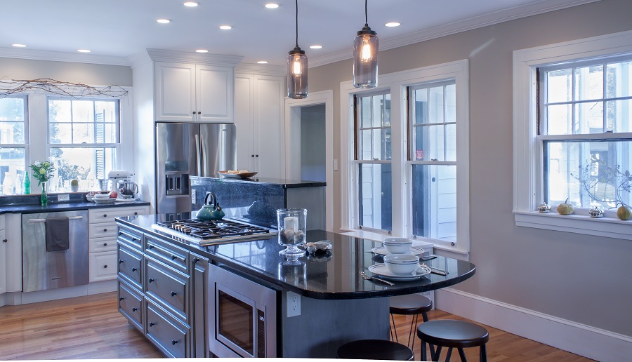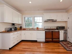 | In summary – Increased storage and work space where greatly improved in this kitchen Manchester NH. This was achieved by the addition of an island as well as many more useable cabinets in this previously wide open wasted space. The cabinetry is also a frameless design further increasing the amount of storage in each of the cabinets. |