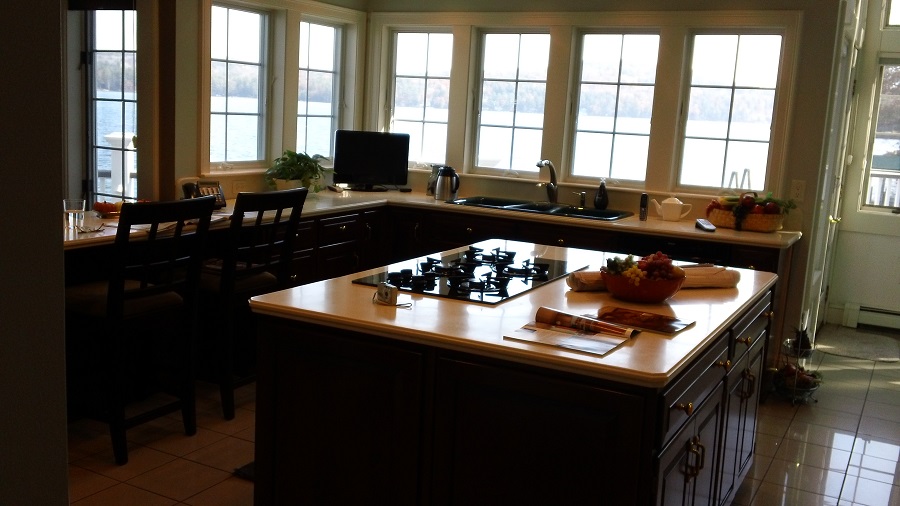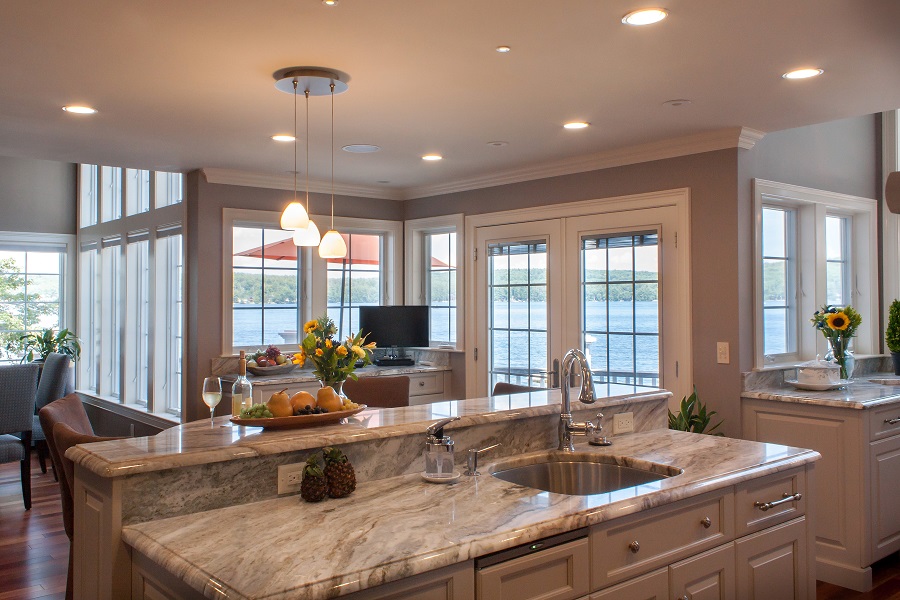 - Moving the door to the deck transformed this Meredith NH kitchen from an awkward layout to one that is functional and stunning!