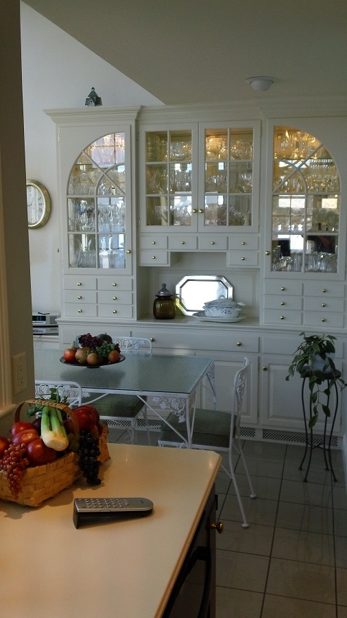 | In summary – This Meredith NH kitchen did an amazing transformation. When the designer started it was a kitchen that lacked storage and was not functional. Now it is a beautiful space that functions and uses the space considerably better. By moving the door to the patio to outside of the kitchen area allowed the kitchen to move back creating a much better use of space. Adding wall cabinets provided additional storage and also gave the kitchen a lovely finished look. Matching the back splash and the granite really make the kitchen pop! |