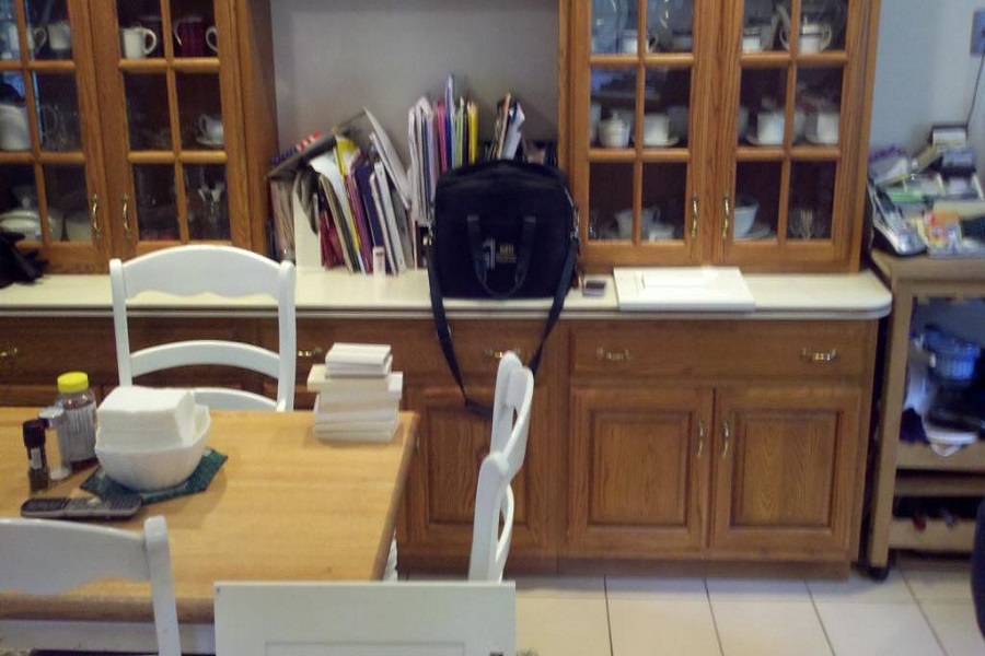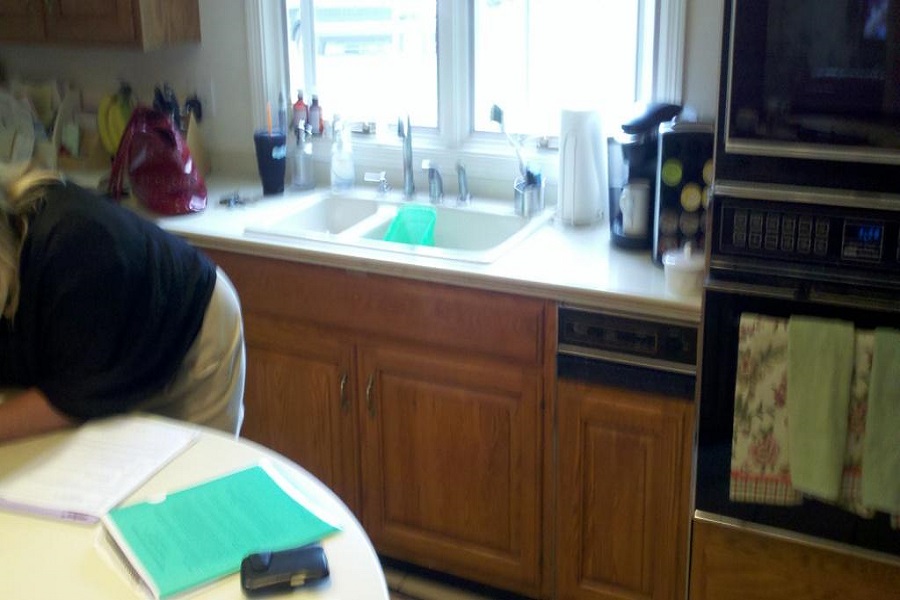 - Sink was also relocated to the island but hidden from view by two taller cabinets that are use for additional storage.