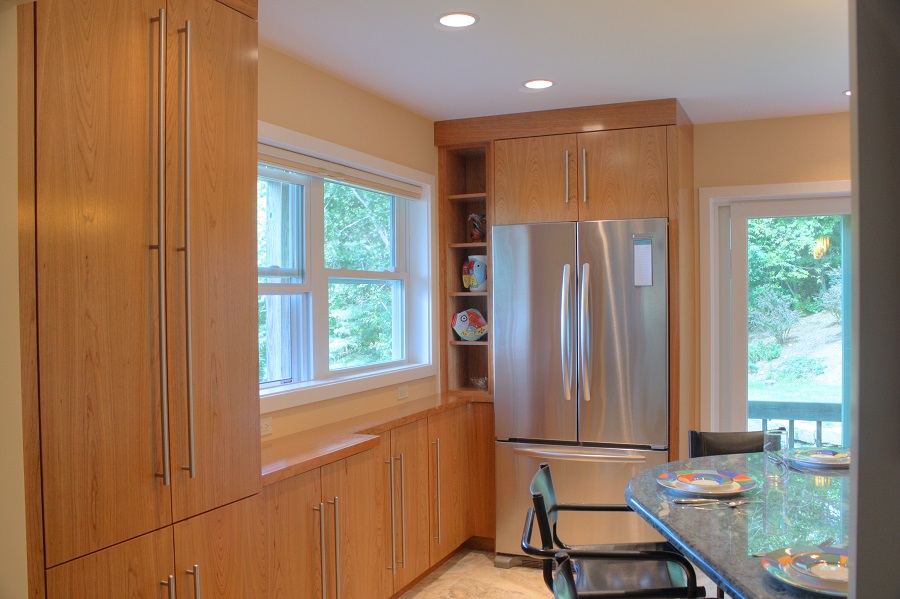 - Cabinetry was updated however to a natural cherry wood in a flat door style to keep with the contemporary look.