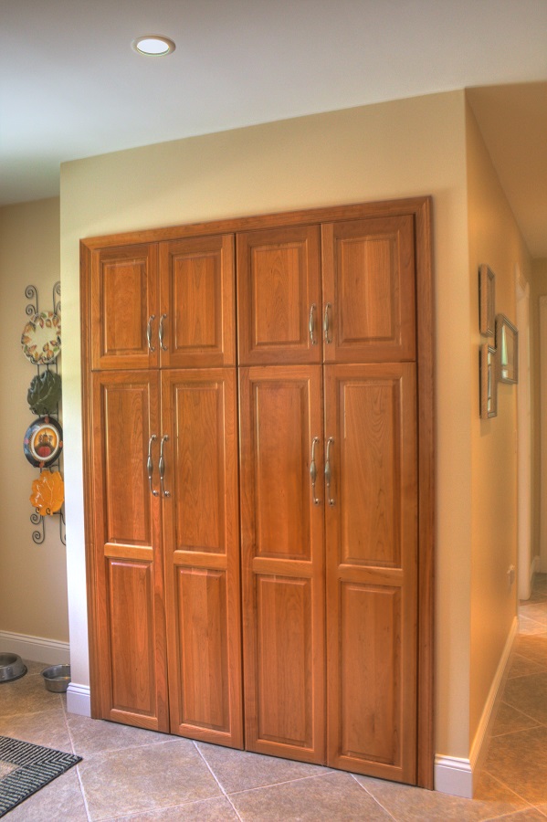 - Prep island is added with taller pantry cabinets to hide the kitchen mess.
