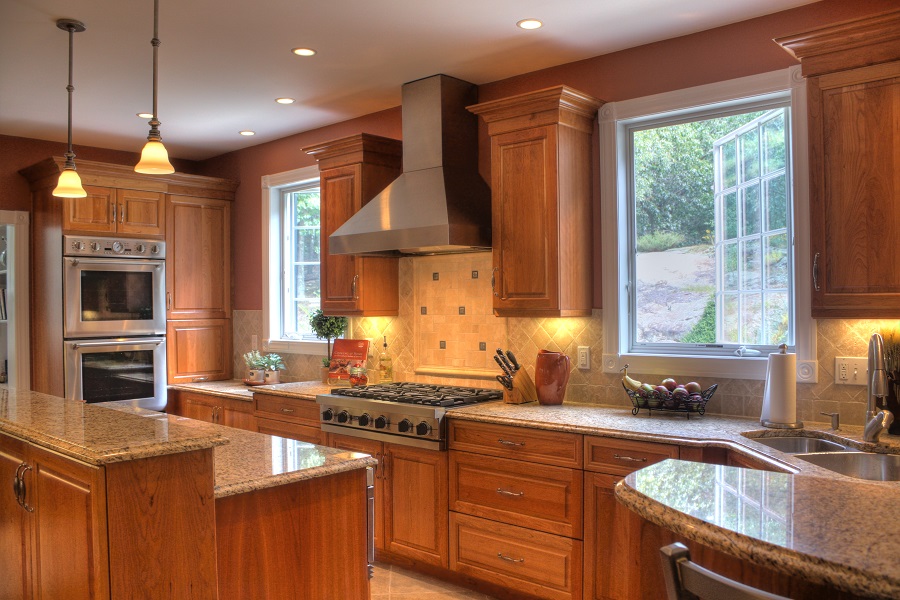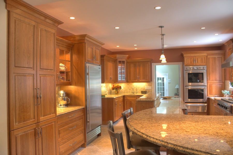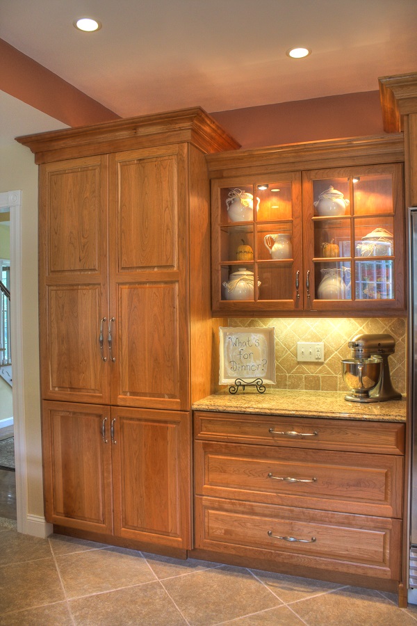 - Natural cherry cabinetry with ups and downs now light up this Chelmsford MA kitchens space.