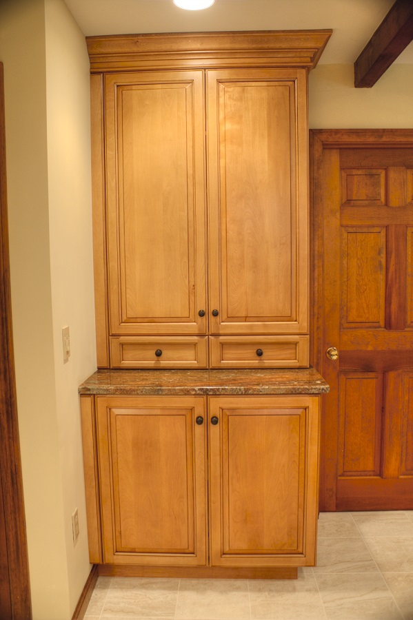 - Cabinetry was updated however stayed with the traditional style and added a large crown to bring the cabinets to the ceiling, giving the kitchen a much more finished look.