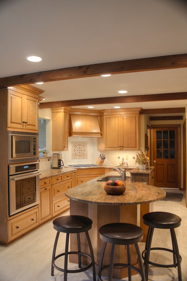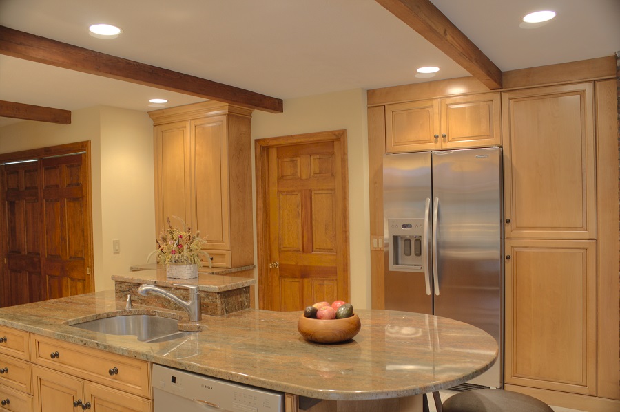 - Adding plenty of recessed lighting makes this once dark space into a beautiful well lit kitchen.
