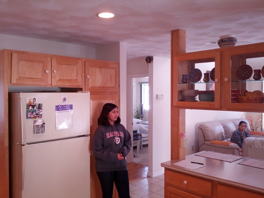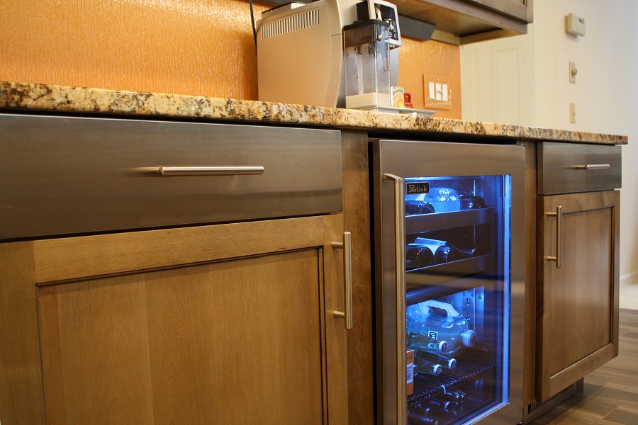 | In summary – This Stoneham Ma transformed from a poor layout with outdated cabinetry and limited counter space to a stunning space that would be any cooks dream. Moving the cooktop to the island provides plenty of countertop space for prep for more than one cook. Small glass wall cabinet provides the perfect place for display pieces without taking up too much space. Table height seating attached to the island is perfect for morning breakfast, paying the bills or just sitting around to have a cup of coffee or wine. Two sinks areas make clean up a breeze. Now this kitchen is really something special. |